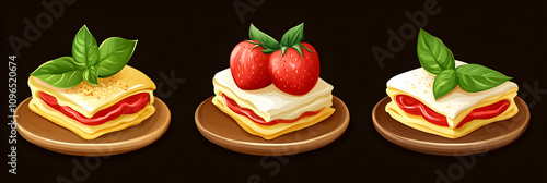 Delicious Strawberry Mille-feuille Pastry, Garnished with Basil, Served on Wooden Platters, Illustrated Food Image