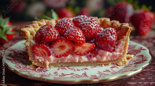 Delicious Strawberry Tart Pastry Dessert with Creamy Filling and Powdered Sugar