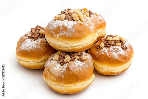 Delicious Sweet Baked Pastry with Nuts and Powdered Sugar on a White Background