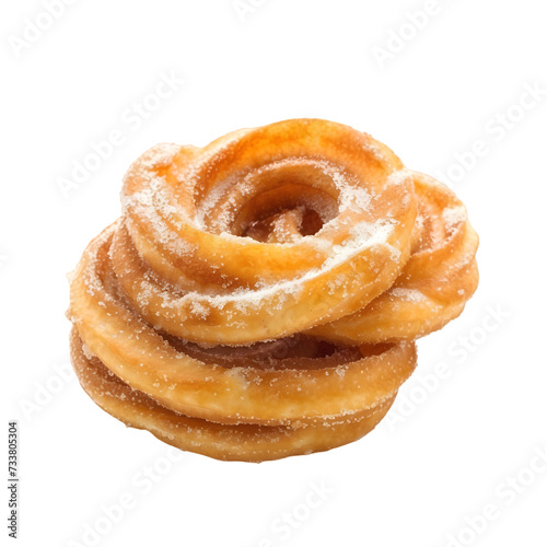 Delicious sweet churos with powdered sugar isolated on transparent background