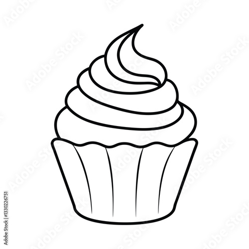 Delicious Swirled Cupcake, Line Art, Sweet Treat, Bakery, Dessert