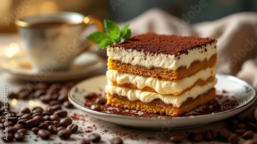 Delicious tasty of Traditional italian dessert tiramisu cake