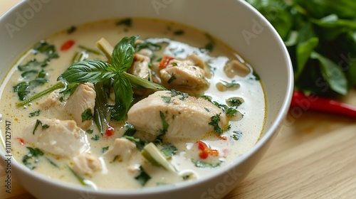 Delicious Thai Green Chicken Curry Soup Creamy Coconut Milk Broth Fresh Herbs