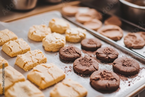 Delicious Vanilla And Chocolate Cookies Baking On Tray
