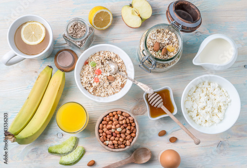 delicious vegeterian organic breakfast, topview