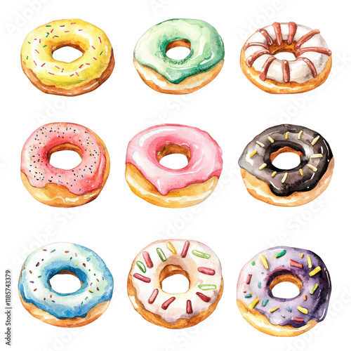 Delicious Watercolor Donuts Sweet Treats Bakery Food Illustration