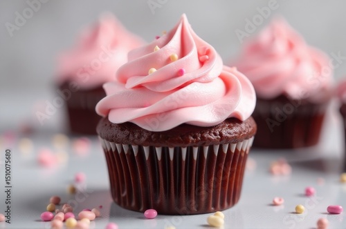 Delicious-looking cupcake with bright pink frosting, perfect for food photography or baking inspiration