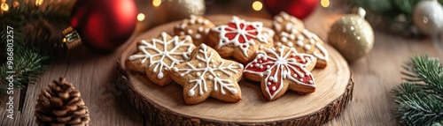 Deliciously decorated Christmas cookies displayed on a wooden platter, perfect for holiday festivities and gatherings.
