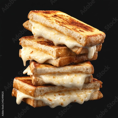 Deliciously Melty Grilled Cheese Sandwich Stacked High on Black Background for Culinary Photography Reference