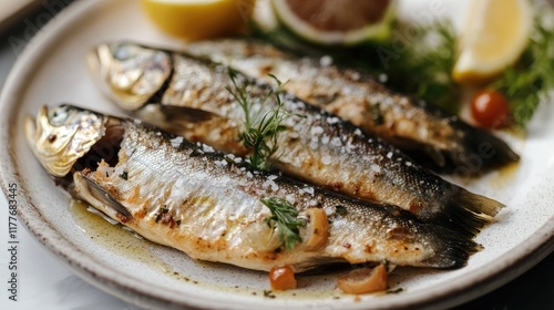 Deliciously plated grilled trout garnished with herbs and lemon slices, highlighting culinary elegance and presentation.
