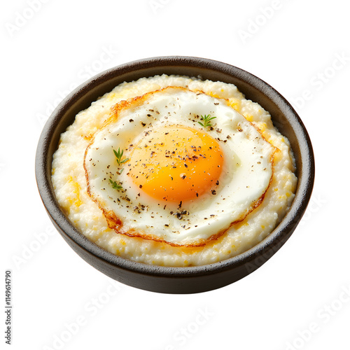 Delightful Cheesy grits with fried egg Isolated On Transparent Background