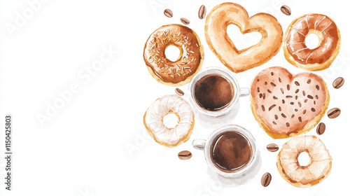 Delightful coffee cups and assorted pastries create cozy atmosphere