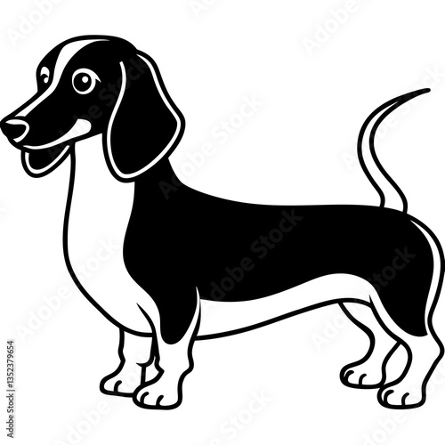 Delightful Dachshund Illustration: A charming monochrome illustration of a dachshund dog, captured in a playful pose, perfect for graphic design and pet-themed projects.