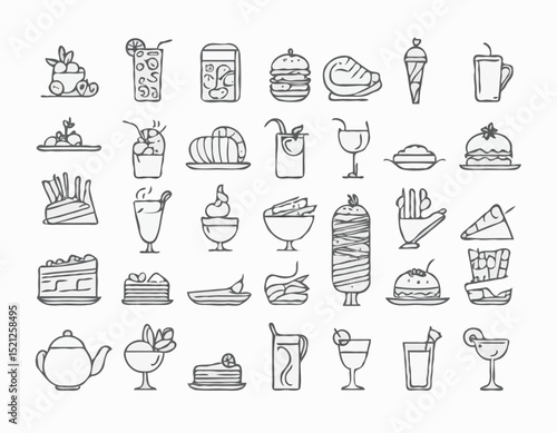 Delightful Food and Drink Line Icons Set for Culinary Enthusiasts