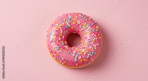 Delightful Pink Donut Composition with Colorful Sprinkles on a Dreamy Pastel Background