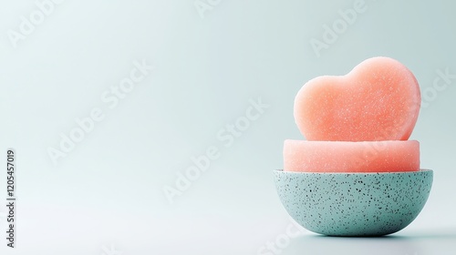 Delightful Pink Heart-Shaped Soap in a Stylish Bowl on a Soft Pastel Background