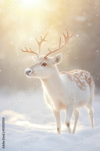 Delightful reindeer frolics occur in a snowy meadow, brimming with joy and whimsical mischief among the playful participants.
