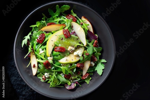 Delightful salad of baby arugula with poached pear and Gorgonzola