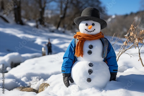 Delightful Snowman Wearing a Cozy Knit Hat and Scarf, Gazing Serenely Through a Magical Snowfall