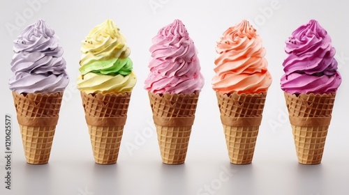 Delightful swirl of ice cream cones in pastel colors ready for summer enjoyment. Generative AI