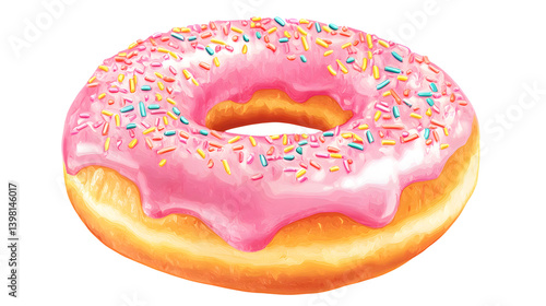 Delightful Whimsical Donut Illustration with Pink Icing for Creative Designs and Projects
