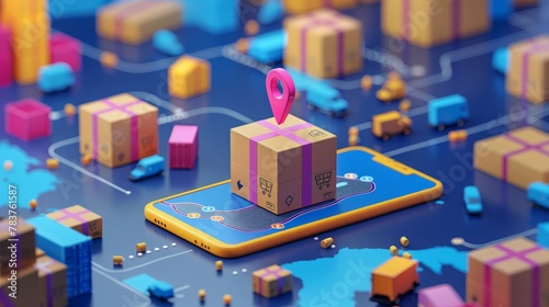 Delivery and Logistic: A 3D vector illustration of a delivery service app interface on a smartphone