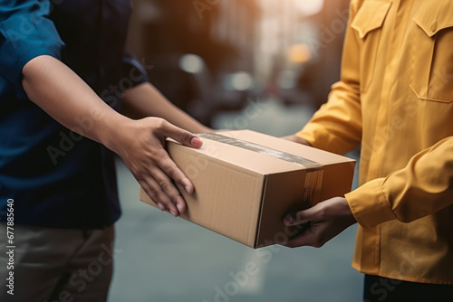 Delivery Man Handling Parcel Boxes For Sending To Customer At House