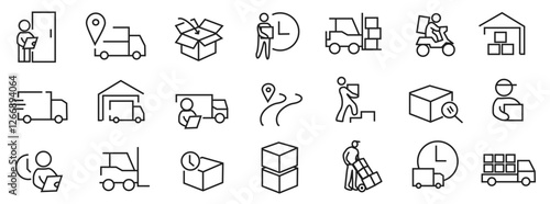 Delivery Related icon illustration vector. Contains such Icons as Delivery, Box delivery, Express Shipping, Truck, Supply and more. Editable file