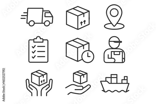 Delivery Service Line Icons Set – Simple Outline Style