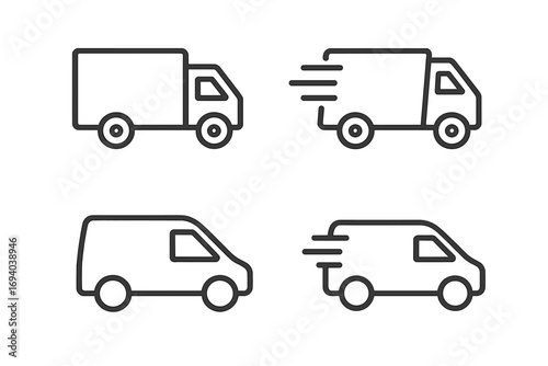 Delivery truck and van line icon set. Fast shipping and logistics concept. Express delivery service symbol. Transport vehicle pictogram collection for web and apps. Vector.