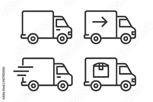 Delivery truck line icon set. Shipping, logistics, and fast transport symbols. Vector icons for UI, web, and apps. Lorry, van, and cargo service pictograms. Editable stroke.