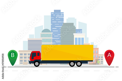 Delivery truck on city background. Vector illustration. Flat design. ESP10.