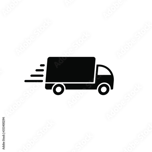 Delivery truck vector icon. Fast moving transport service car symbol. Speed shipping sign. Logistic logo. Black silhouette isolated on white background.