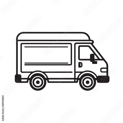 DELIVERY VAN in cartoon, doodle style. Isolated 2d vector illustration in logo, icon, sketch style, Eps 10, black and white. AI Generative