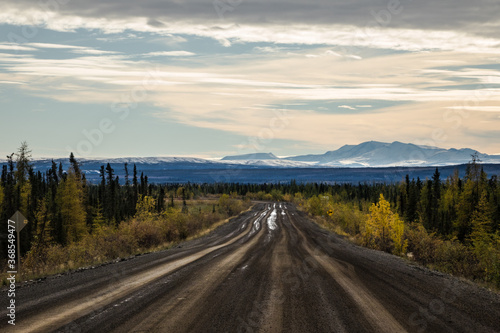 Dempster Highway in fall from the middle of the road. with Mountains in the distance, Open Road Adventure