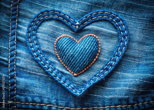 Denim Heart: Fashion Portrait Photography on Textured Canvas Background