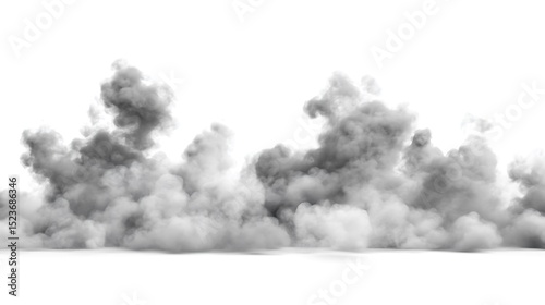 Dense cloud of dark smoke over a white background perfect for compositing and atmospheric effects use