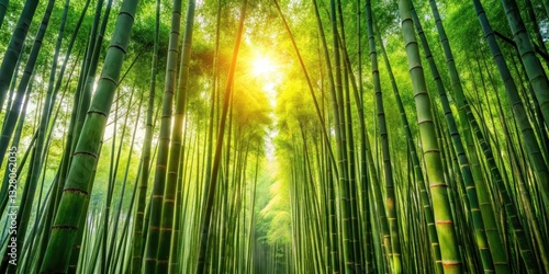 Dense foliage of bamboo plants in a serene forest setting with sunlight filtering through the leaves, foliage, trees, foliage