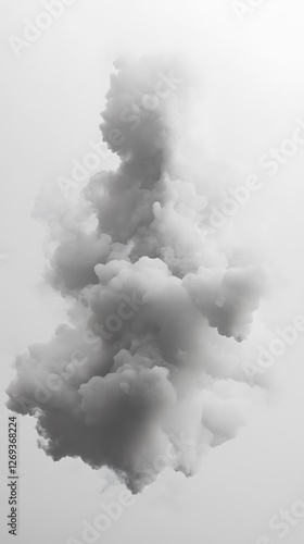Dense Gray Smoke Cloud Rising Upward With Textured Shapes And Forms Against A Light Background