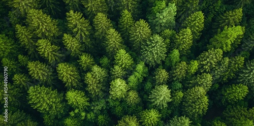Densely green forest seen from above for environmental theme purposes