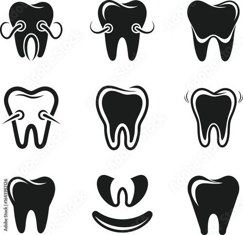 Dental Care Tooth Icons Set , Black Silhouette Vector illustration