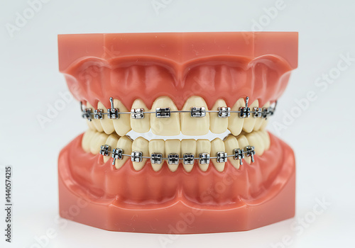 Dental Model with Braces: Orthodontic Treatment Image