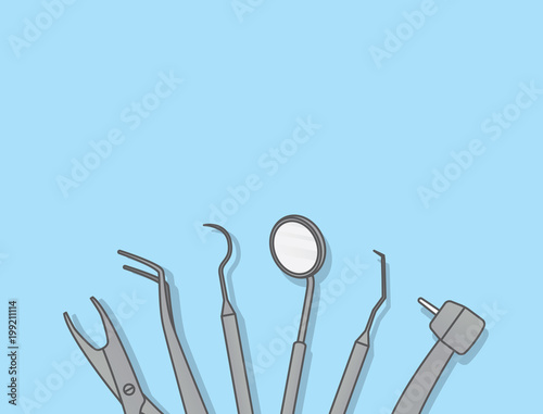 Dental tools illustration vector on blue background. Dental concept.