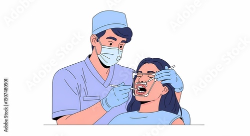 Dentist Examining Patient Teeth During Dental Procedure with Modern Equipment