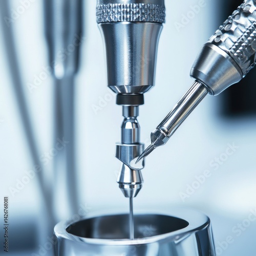 dentist filling a tooth with drill and assistant by side white background