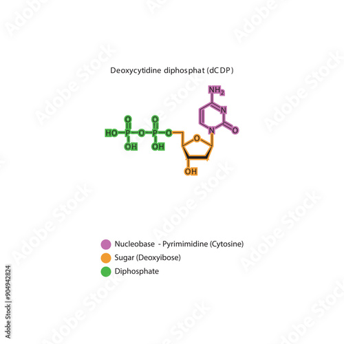 Deoxycytidine diphosphat (dCDP) skeletal structure schematic illustration, Nucleoside molecule.