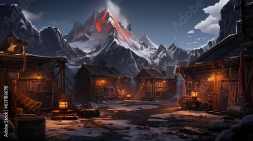 Depict a forge nestled near a volcano where mythical weapons are crafted game art