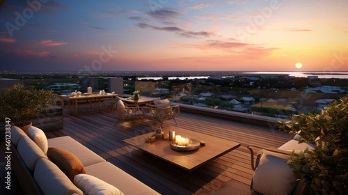 Depict the rooftop of a modern villa as the perfect vantage point for witnessing breathtaking sunsets that paint the sky in vibrant hues
