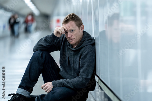 Depressed young man looking destroyed wasted and sad suffering from depression and emotional crisis