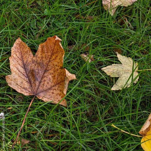 Der Herbst ist da, die ersten Blätter liegen auf der Wiese